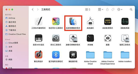 第1步,系統移轉輔助程式在哪裡?開啟舊Mac在「應用程式」裡的「工具程式」就能找到「系統移轉輔助程式」功能