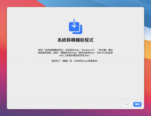 如何快速將资料搬移到新的Mac上?使用Mac內建「系統移轉輔助程式」